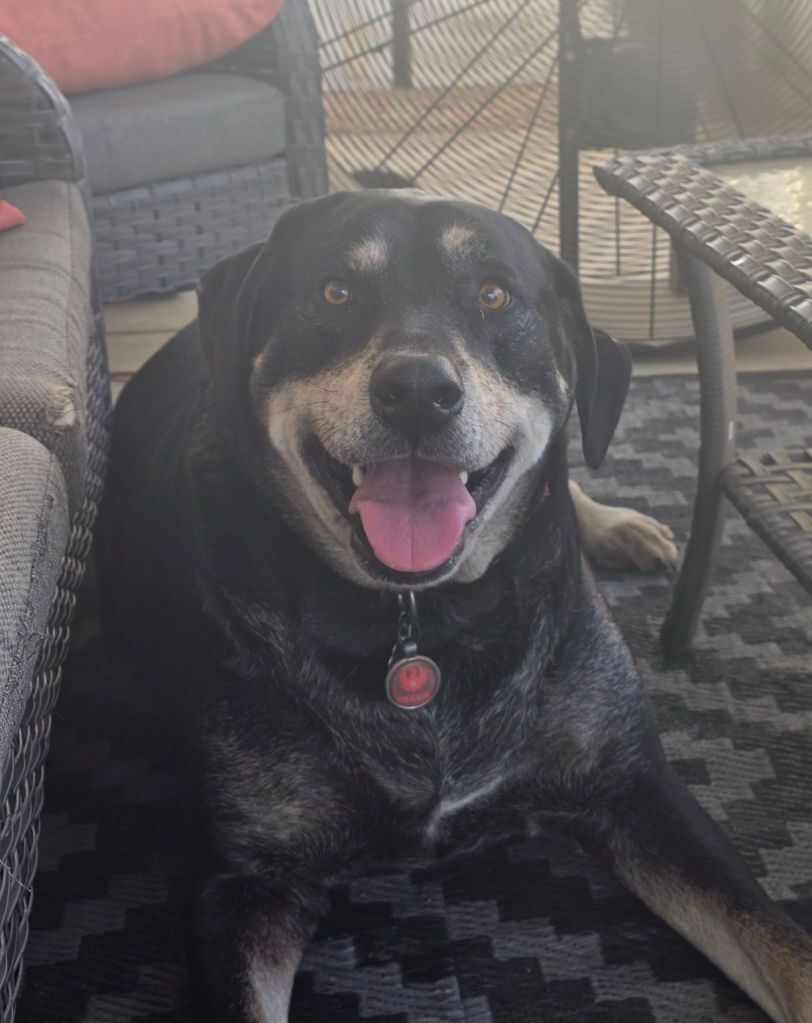 Meet Ruger, our 150 pound snuggle buddy. Due to his size, we believe he is part Rottweiler and Mastiff. He is our gentle giant and is very patient with the other’s in our pack. His best friend is Bandit, but he really loves letting Winnie climb all over him. It’s so funny to watch the biggest of the pack let out his inner puppy.